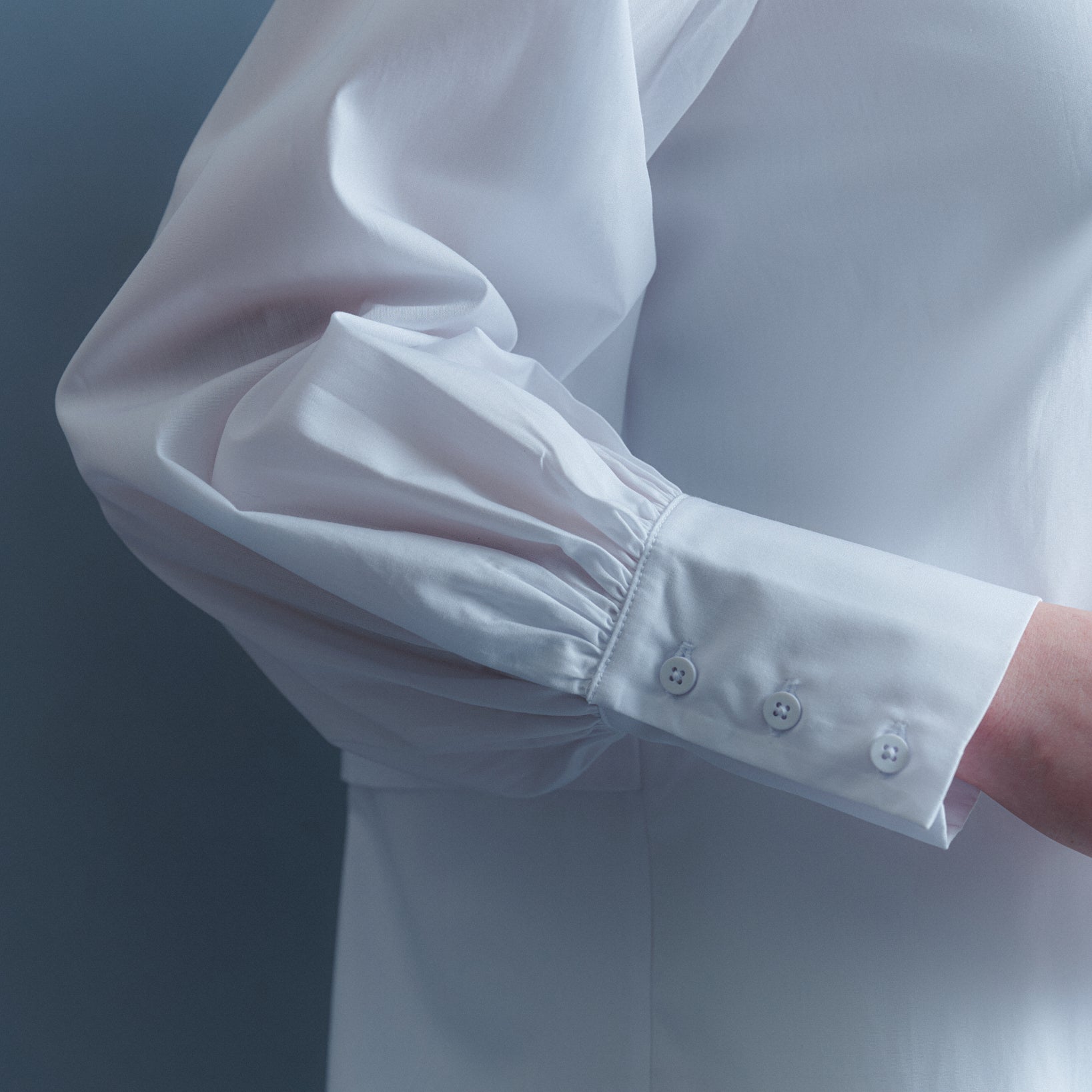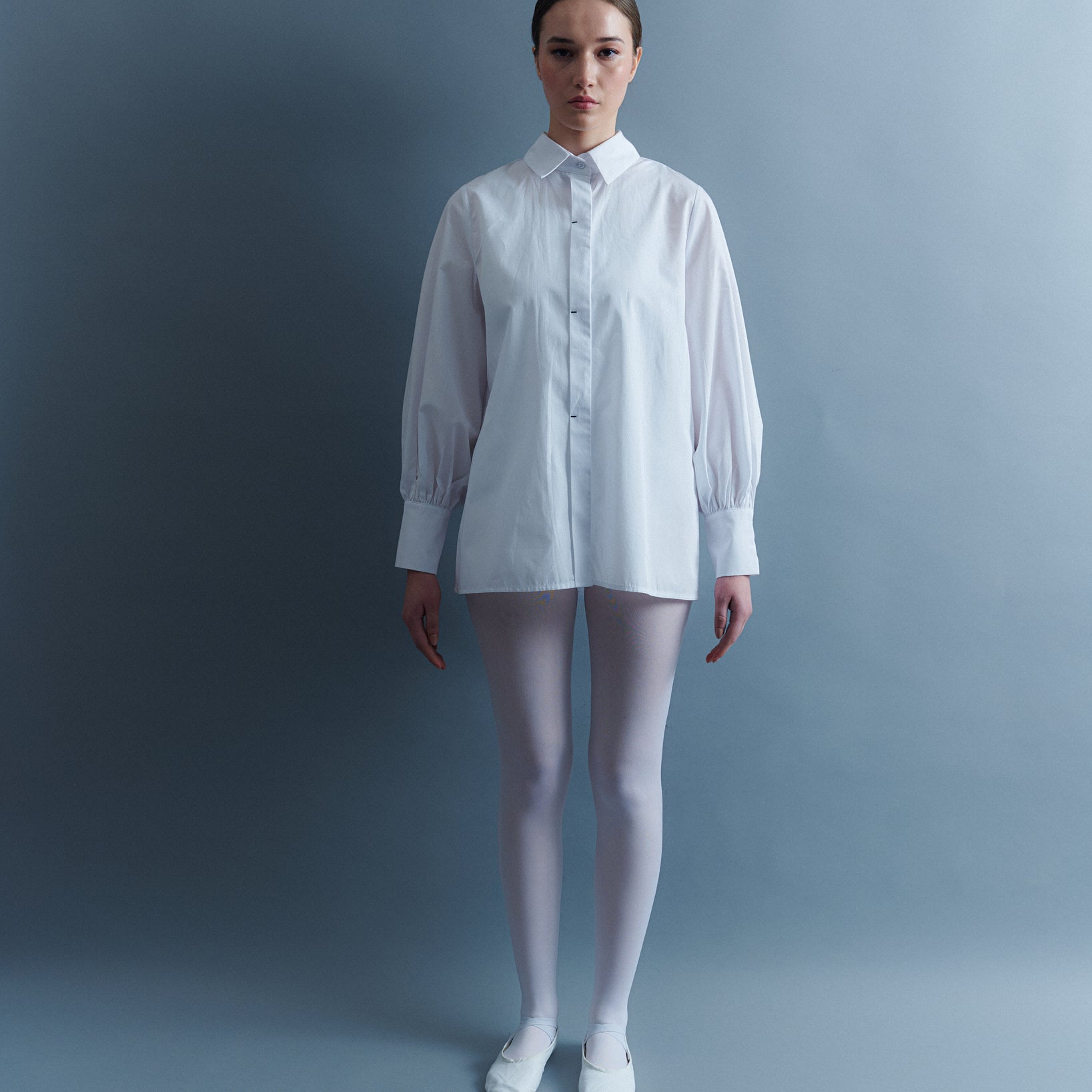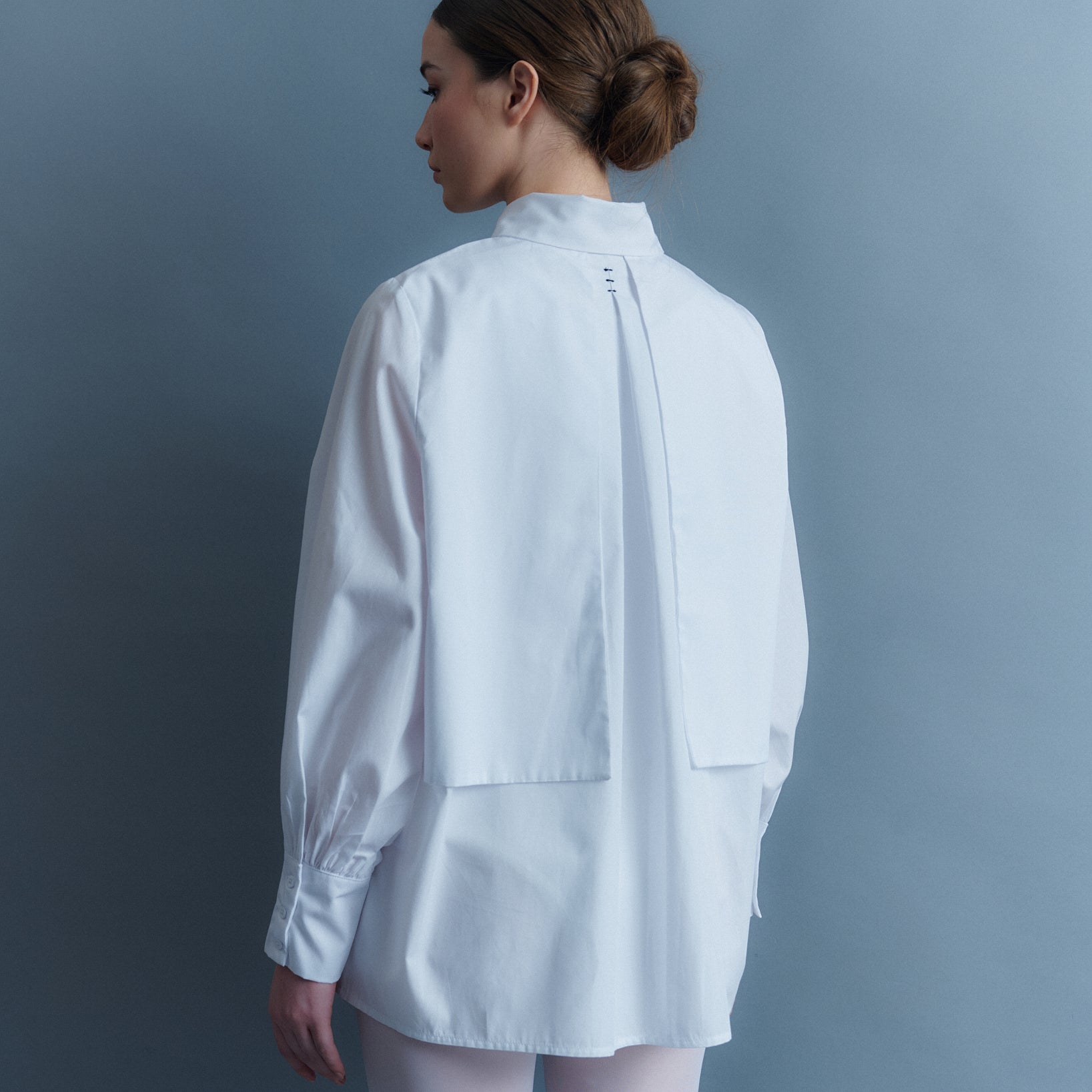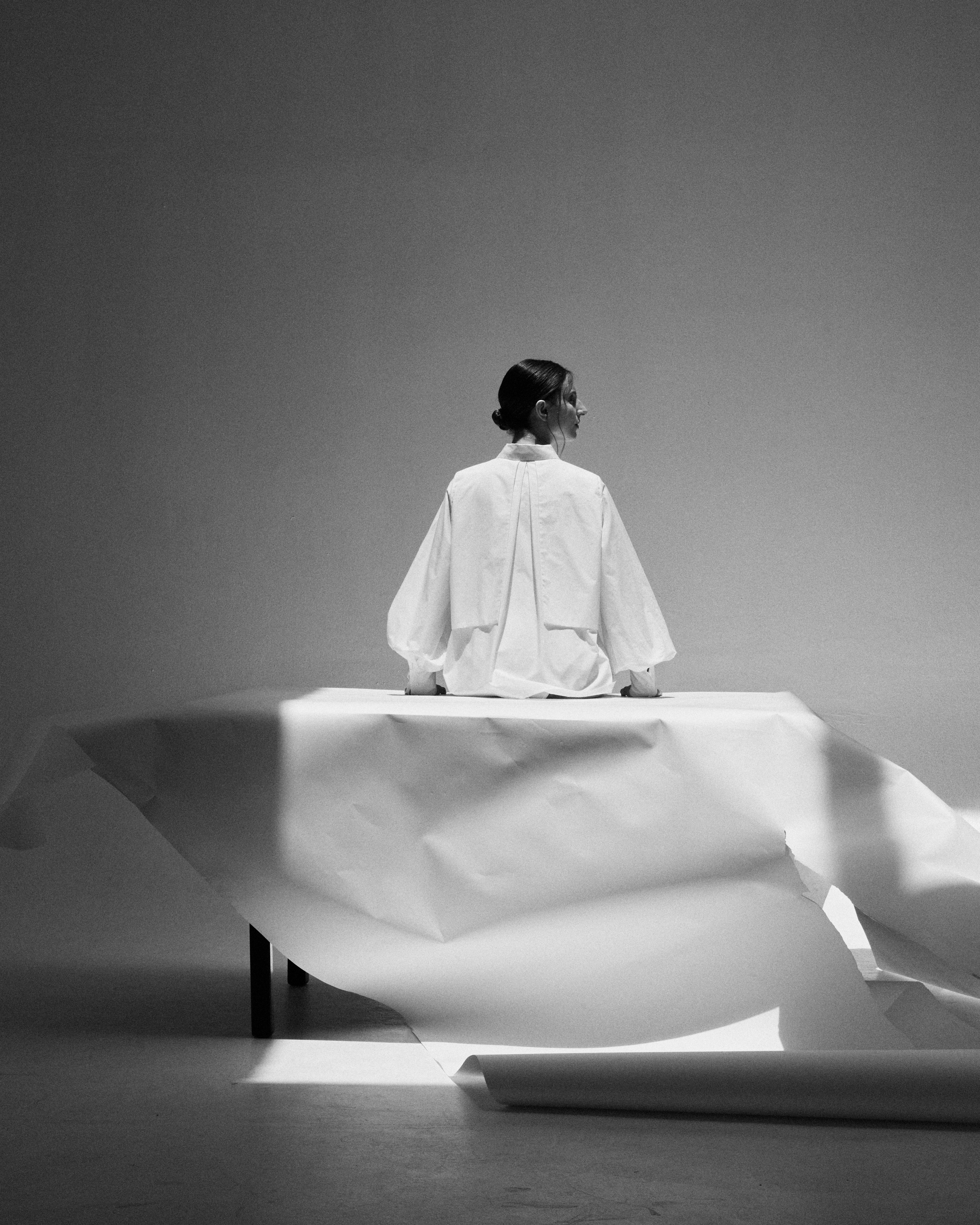 Me interesaba también que hubiera algún detalle en color negro, como sello de mi manera de trabajar, y también que la camisa aludiera a distintas épocas, porque mi trabajo finalmente entrecruza pasado, presente y futuro todo el tiempo.