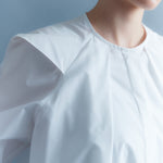 Confeccionada en Perú con popelina 100% algodón pima orgánico, combina tradición y modernidad en un corte impecable. Las pinzas delanteras aportan definición y equilibrio, mientras que la estructura elevada de los hombros suma fuerza y carácter, dando vida a una pieza sofisticada, atemporal y profundamente femenina.