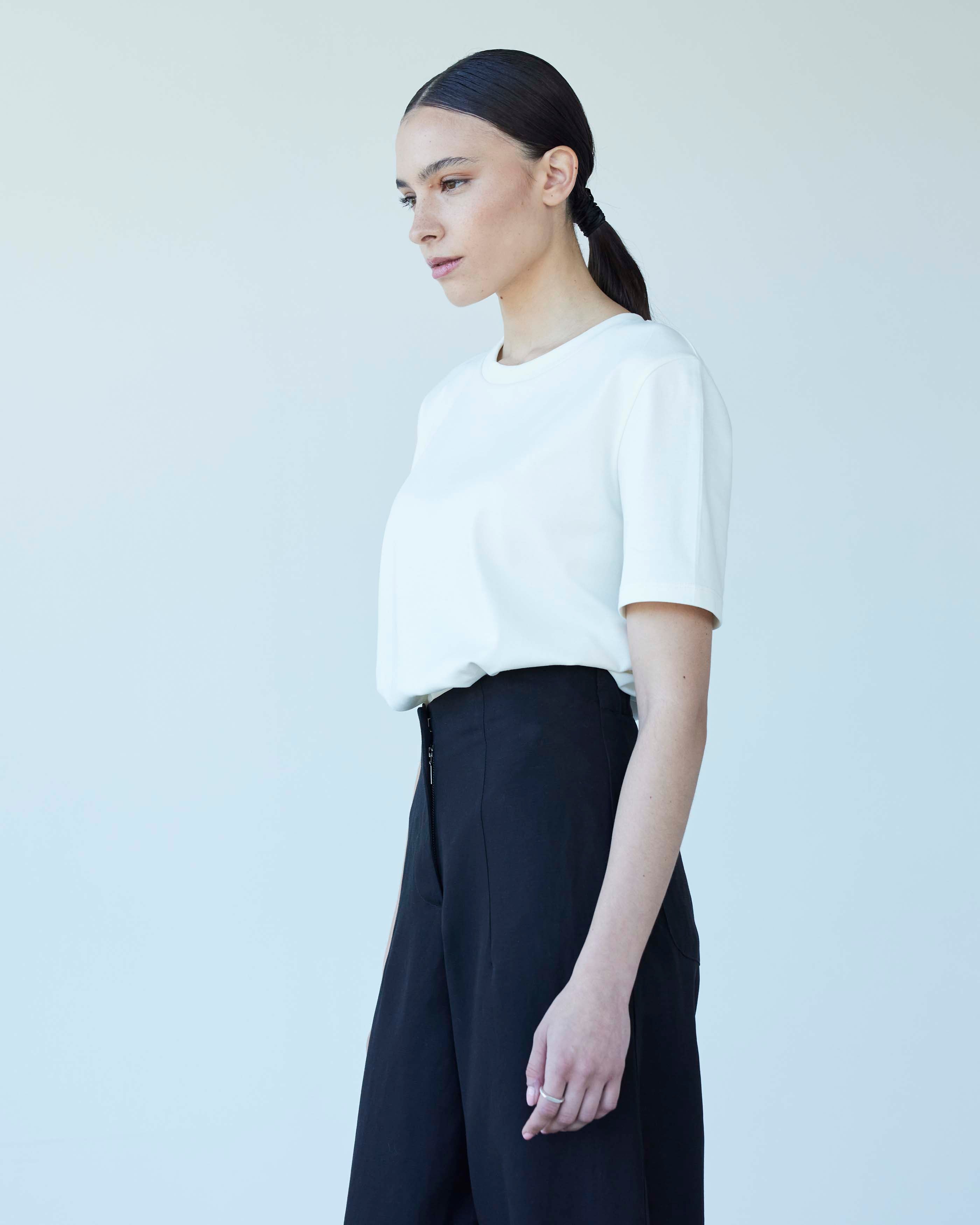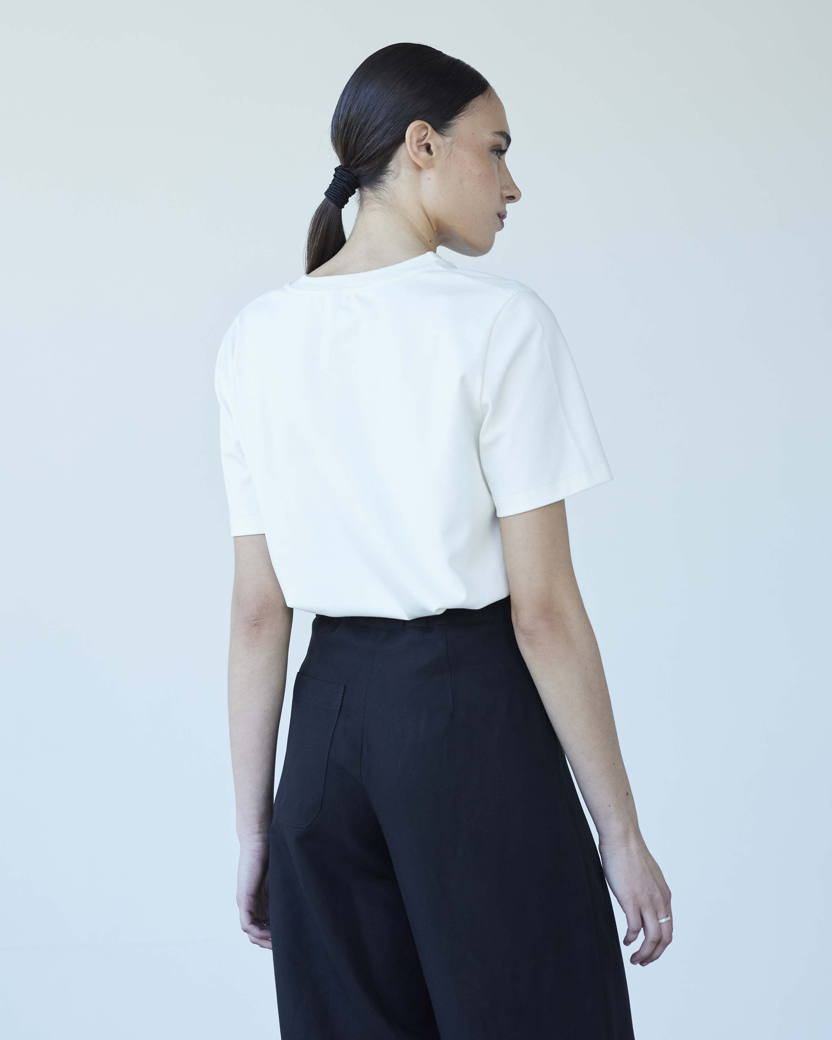 Nuestro top Court, de calce recto, manga corta y escote redondo, está confeccionado en fibras de algodón pima orgánico, que cumplen 100% con los estándares de calidad PAS DENOM, comodidad, durabilidad y sustentabilidad.