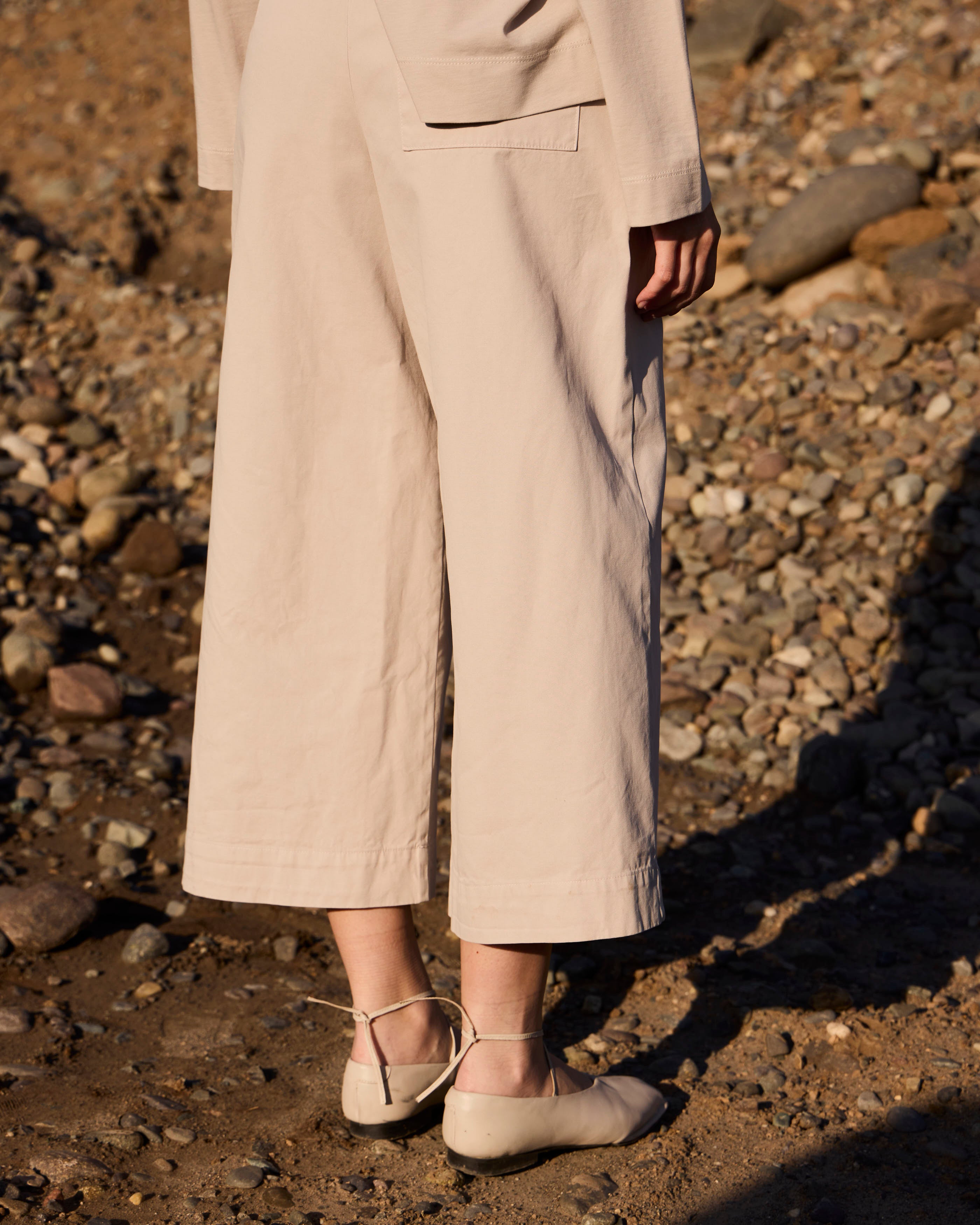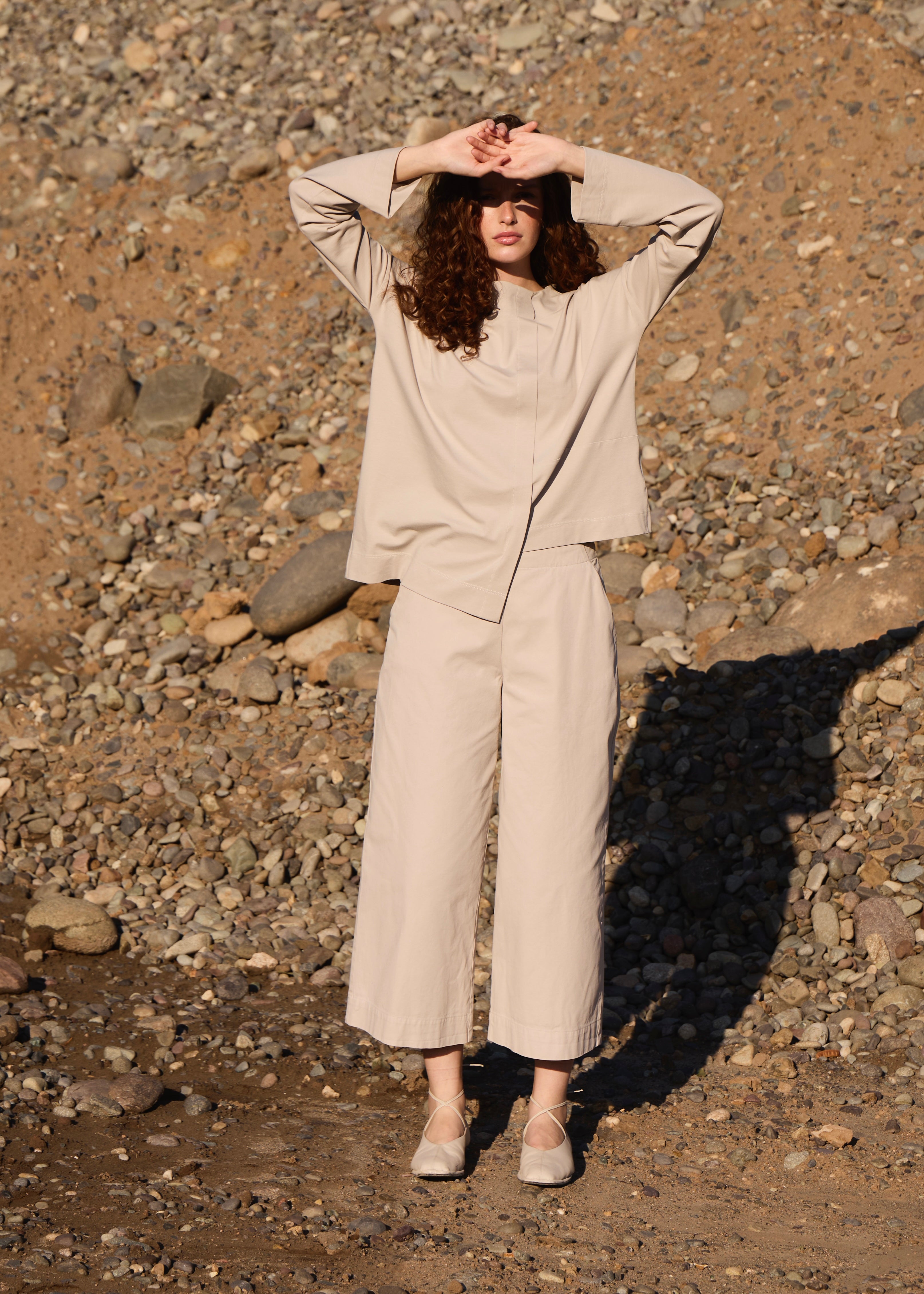 El Pantalón Gang redefine el culotte clásico con un enfoque contemporáneo y sustentable. Confeccionado en gabardina 100% algodón Pima peruano, este pantalón de tiro alto presenta una estructura pulida, con un frente completamente limpio que estiliza la figura y un cierre lateral invisible que acentúa su elegancia sin interrupciones visuales.