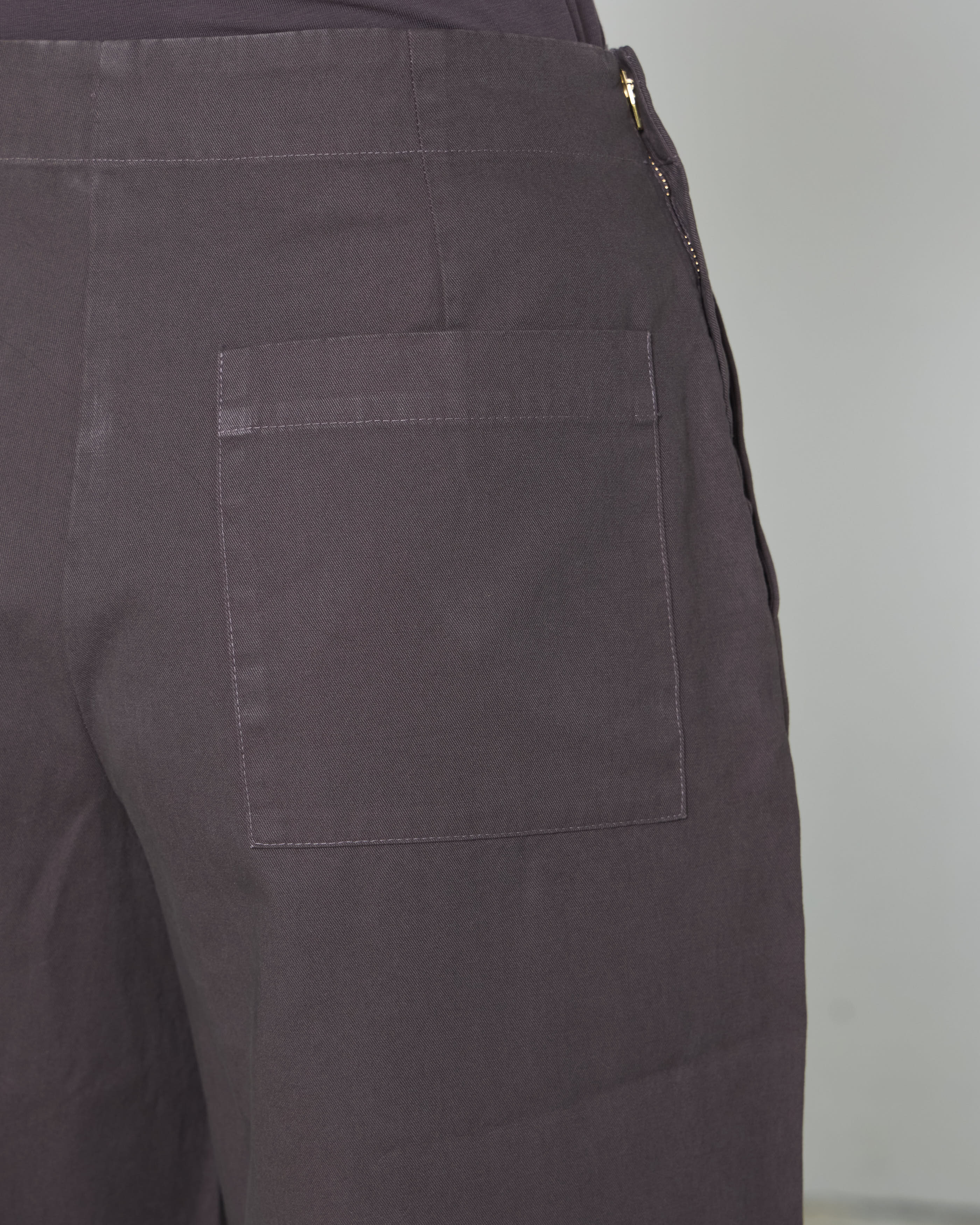El Pantalón Gang redefine el culotte clásico con un enfoque contemporáneo y sustentable. Confeccionado en gabardina 100% algodón Pima peruano, este pantalón de tiro alto presenta una estructura pulida, con un frente completamente limpio que estiliza la figura y un cierre lateral invisible que acentúa su elegancia sin interrupciones visuales.