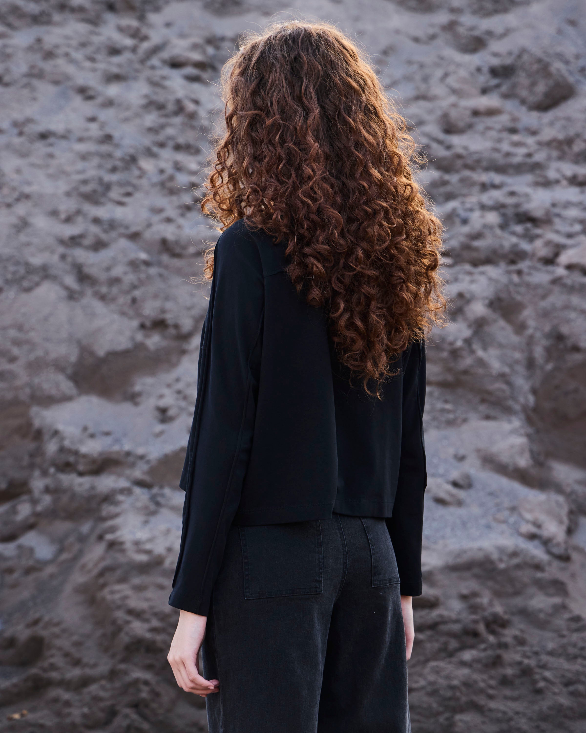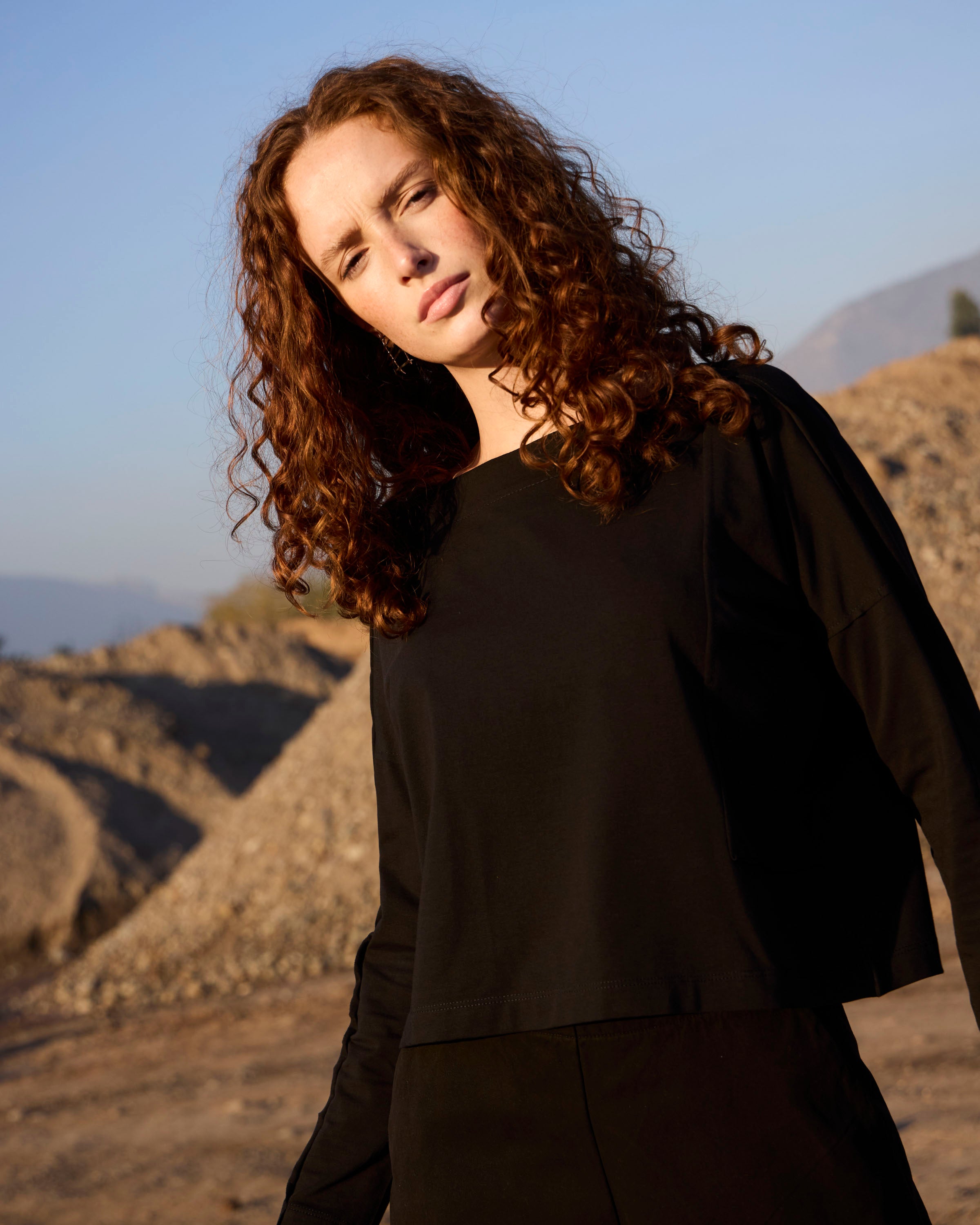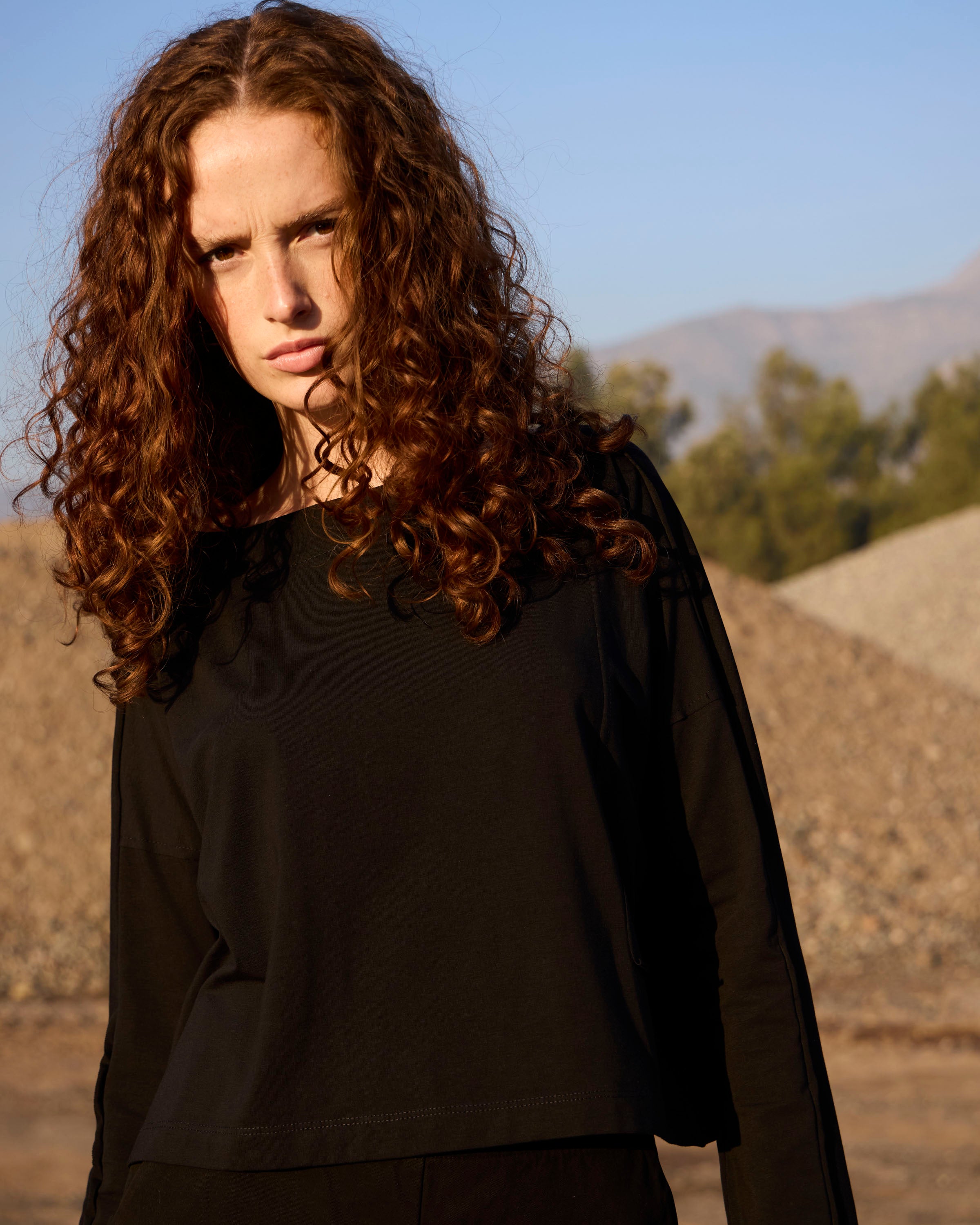 El Top Hill incorpora terminaciones raw edge, un detalle distintivo del carácter PASDENOM: cortes limpios sin costuras visibles que realzan la pureza del diseño. Esta técnica deja el borde al natural, permitiendo que la fibra respire y caiga con movimiento propio, fiel al espíritu minimalista y auténtico de la marca.