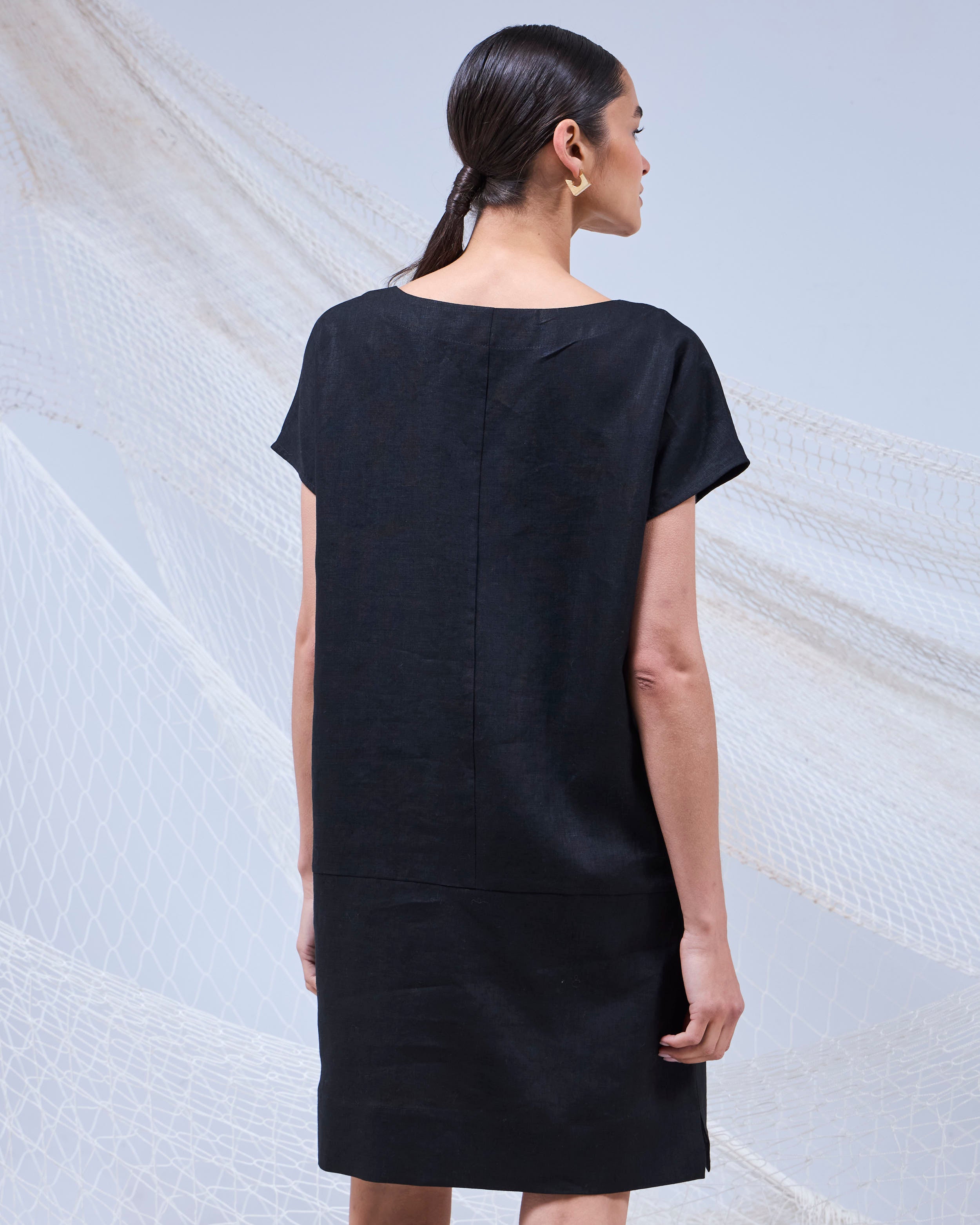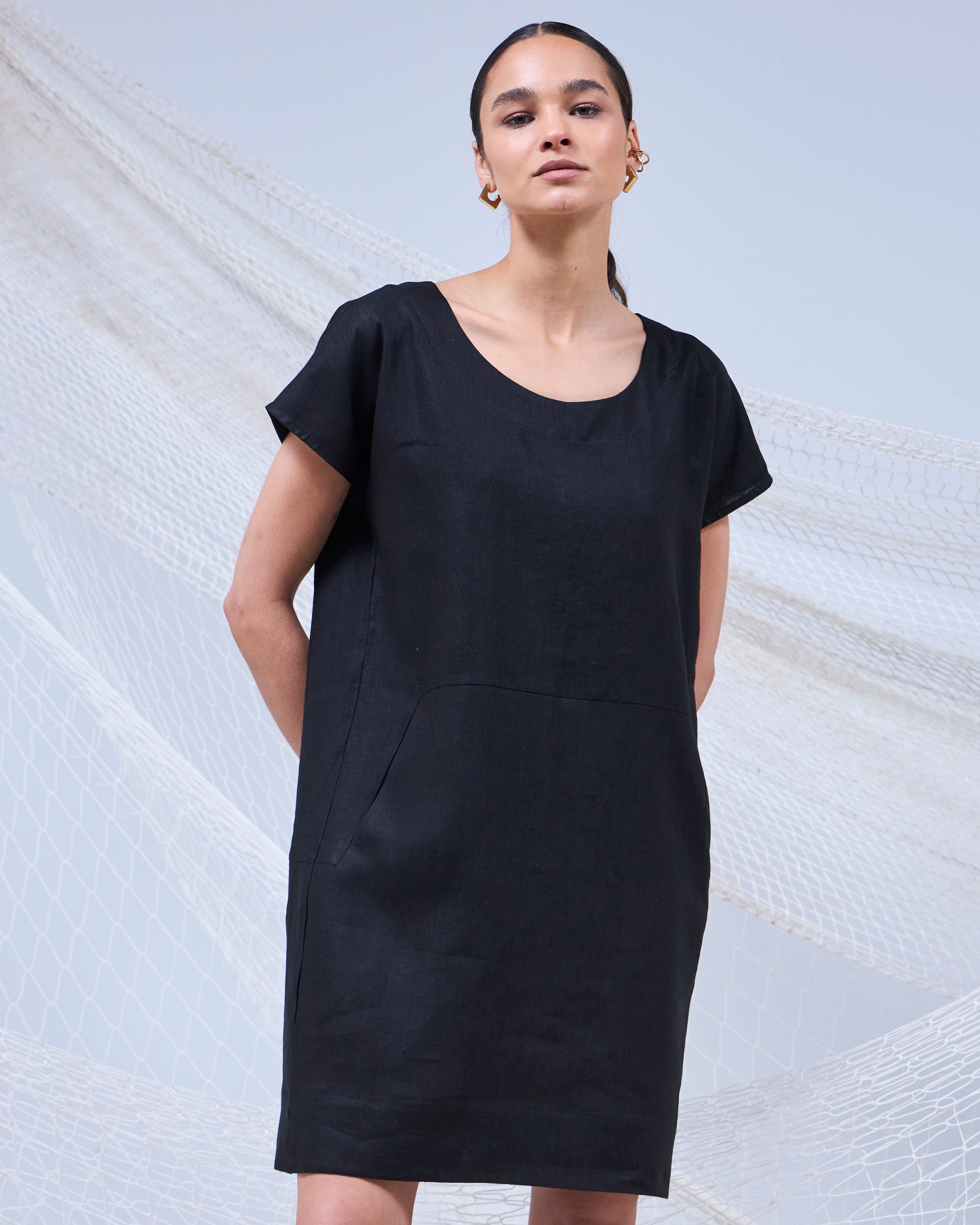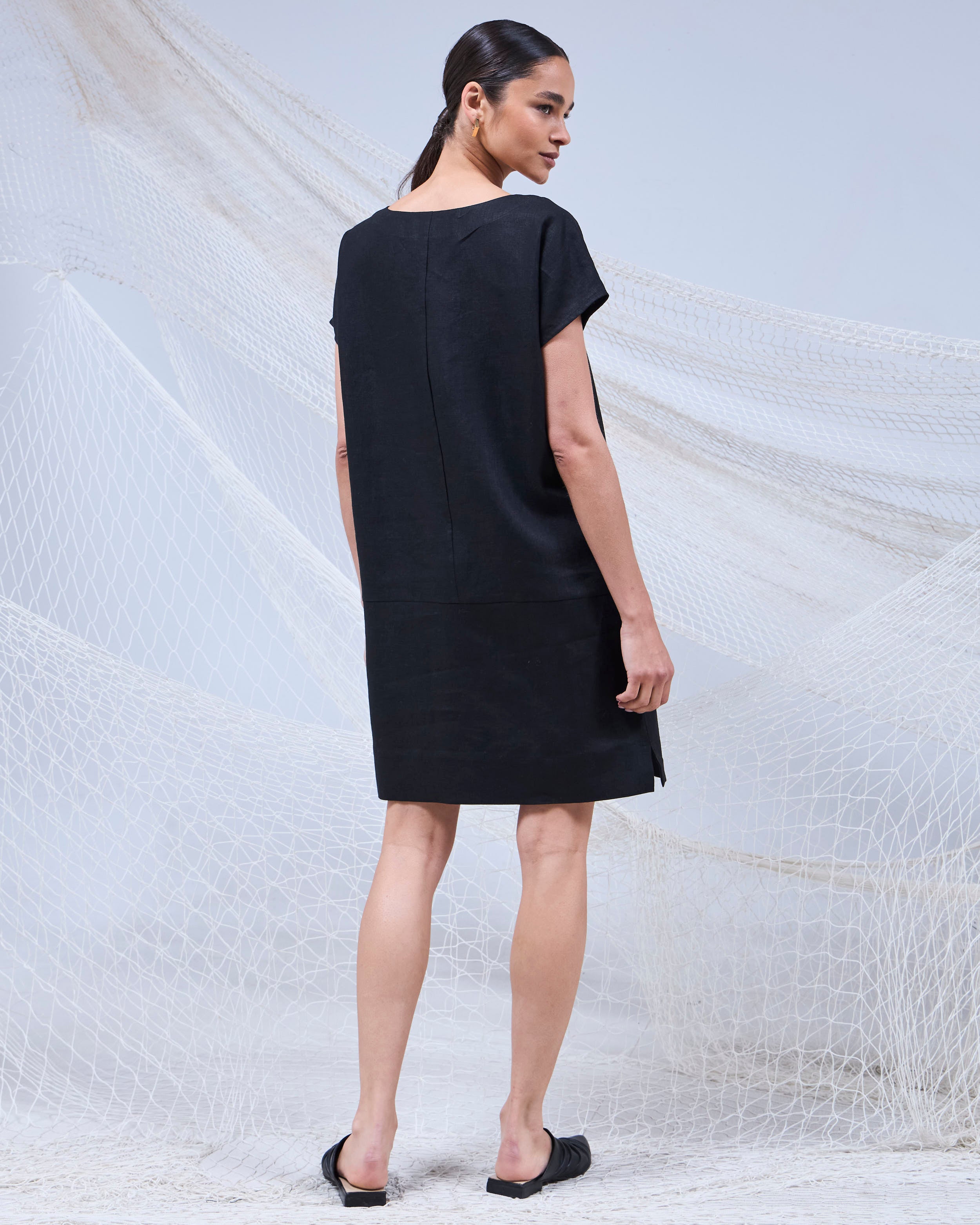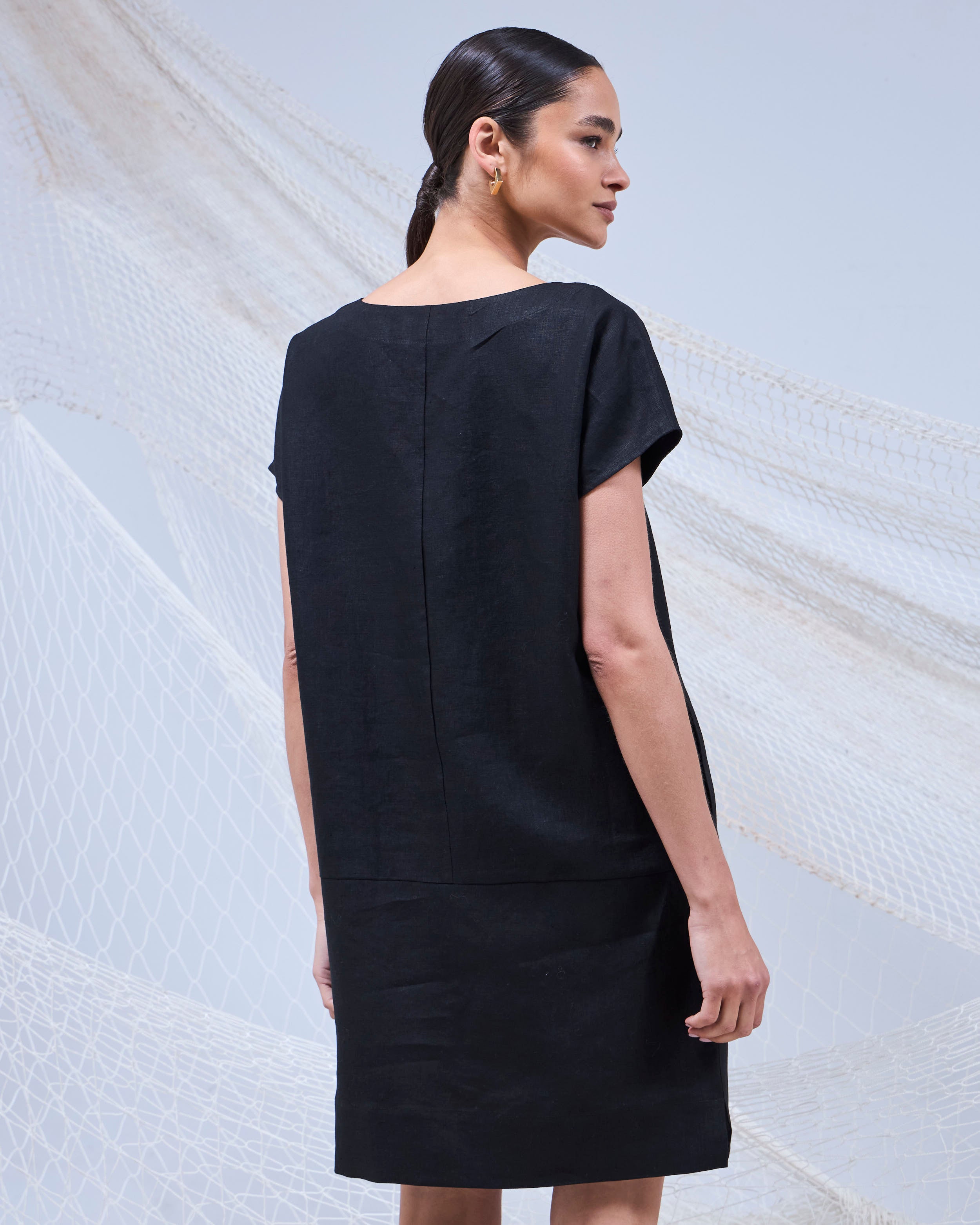 Confeccionado en 100% lino, el vestido corto OMOİYARI tiene calce oversize, escote redondo y bolsillos funcionales, combinando amplitud y comodidad con un diseño minimalista característico de PAS DENOM. Su silueta amplia y fluida permite libertad de movimiento, ofreciendo ligereza y frescura al usarlo. Un vestido pensado para acompañarte en distintas rutinas y estilos con comodidad y sofisticación.