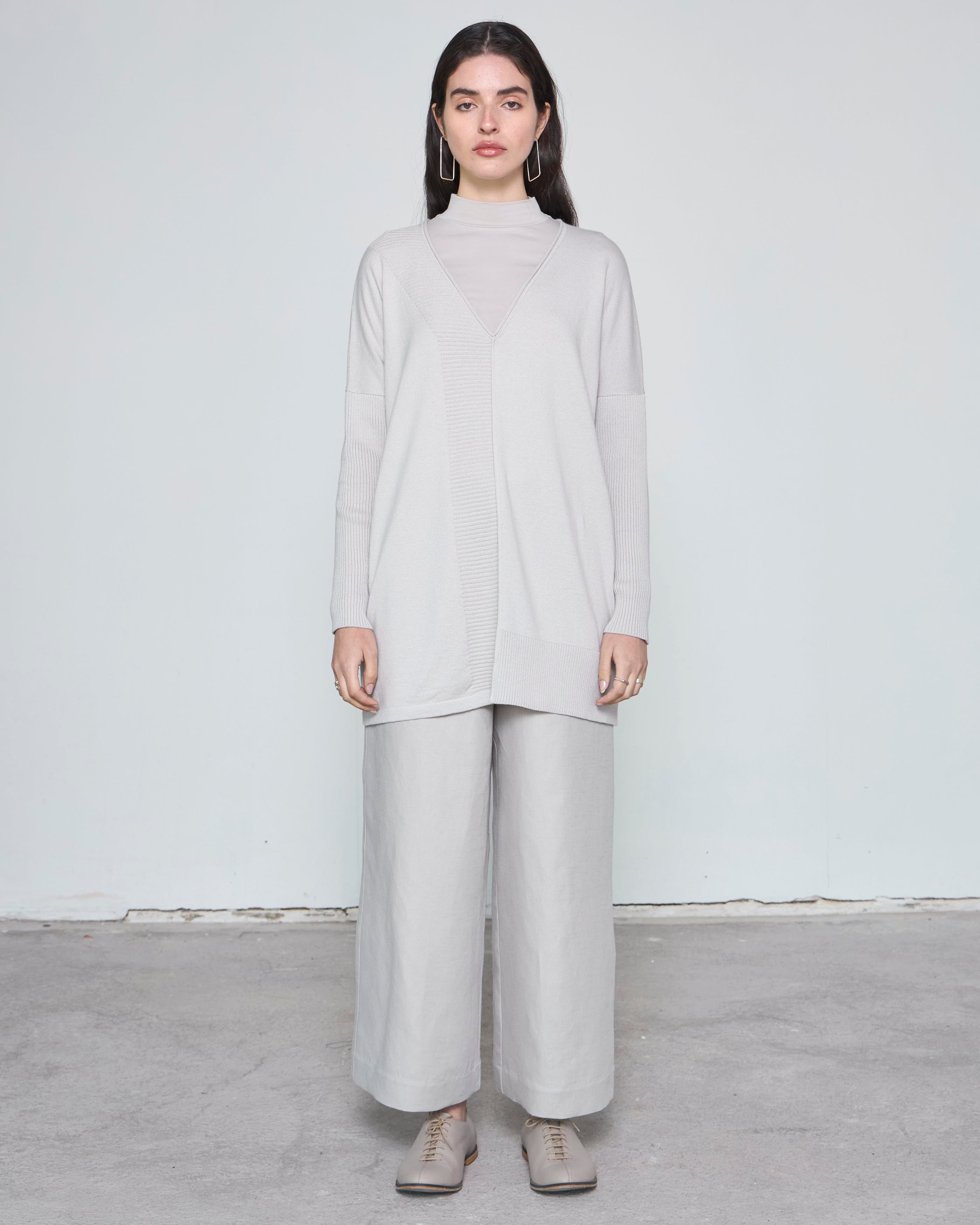 Nuestro tejido VANDANA es una prenda oversize, versátil y atemporal, diseñada para quienes buscan elegancia sin sacrificar comodidad. Con un escote en V, detalles de rib asimétricos y hombro caído, este tejido se adapta perfectamente a diferentes estilos, ya sea con pantalones anchos, leggins o incluso con un top básico como nuestro Testa.