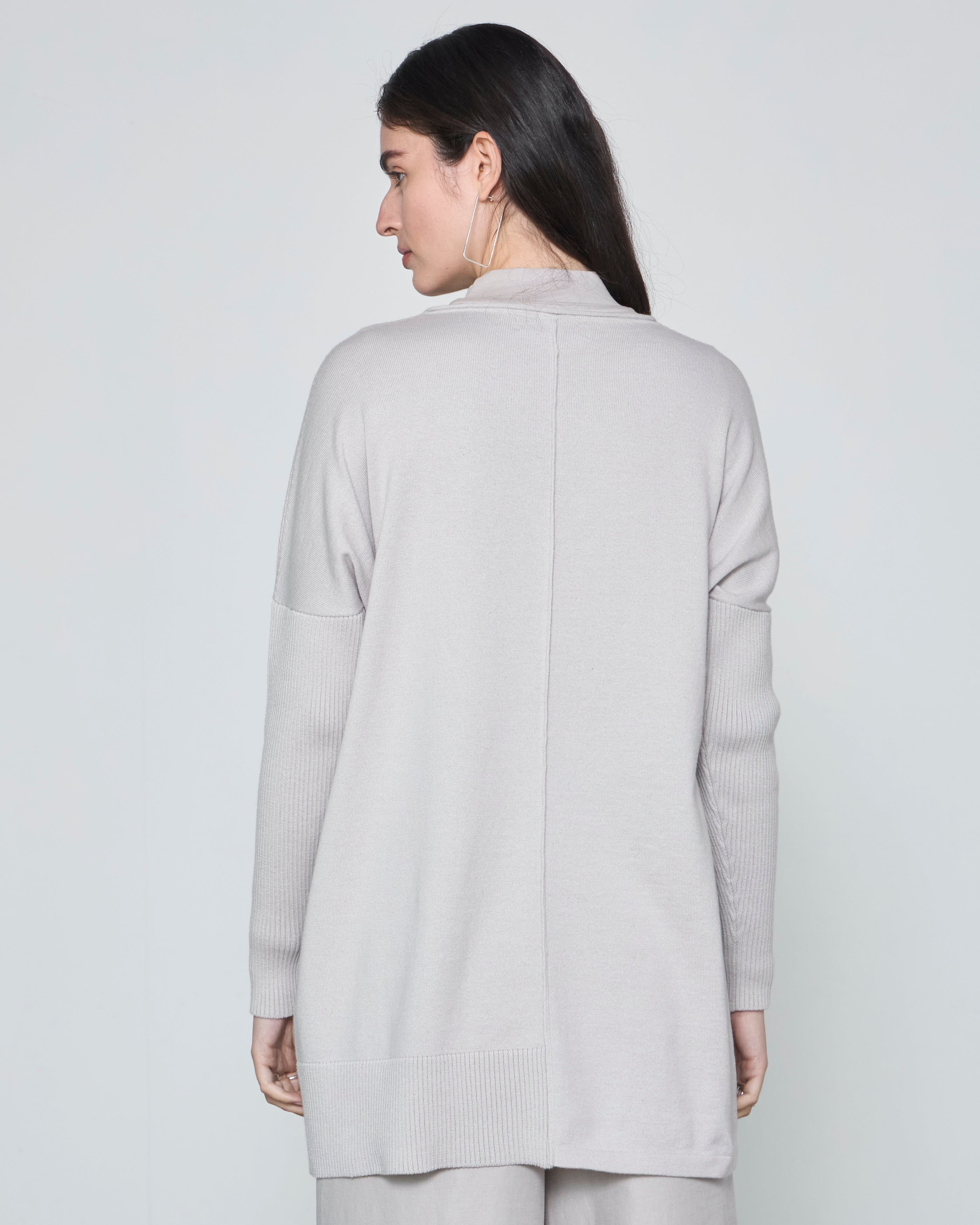 Confeccionada en un exclusivo punto desarrollado especialmente por Pas Denom, la VANDANA presenta una textura única y sofisticada, otorgando un aire moderno y minimalista. Su calce oversize crop le proporciona una caída relajada, ideal para usar en capas o como pieza central de un conjunto.