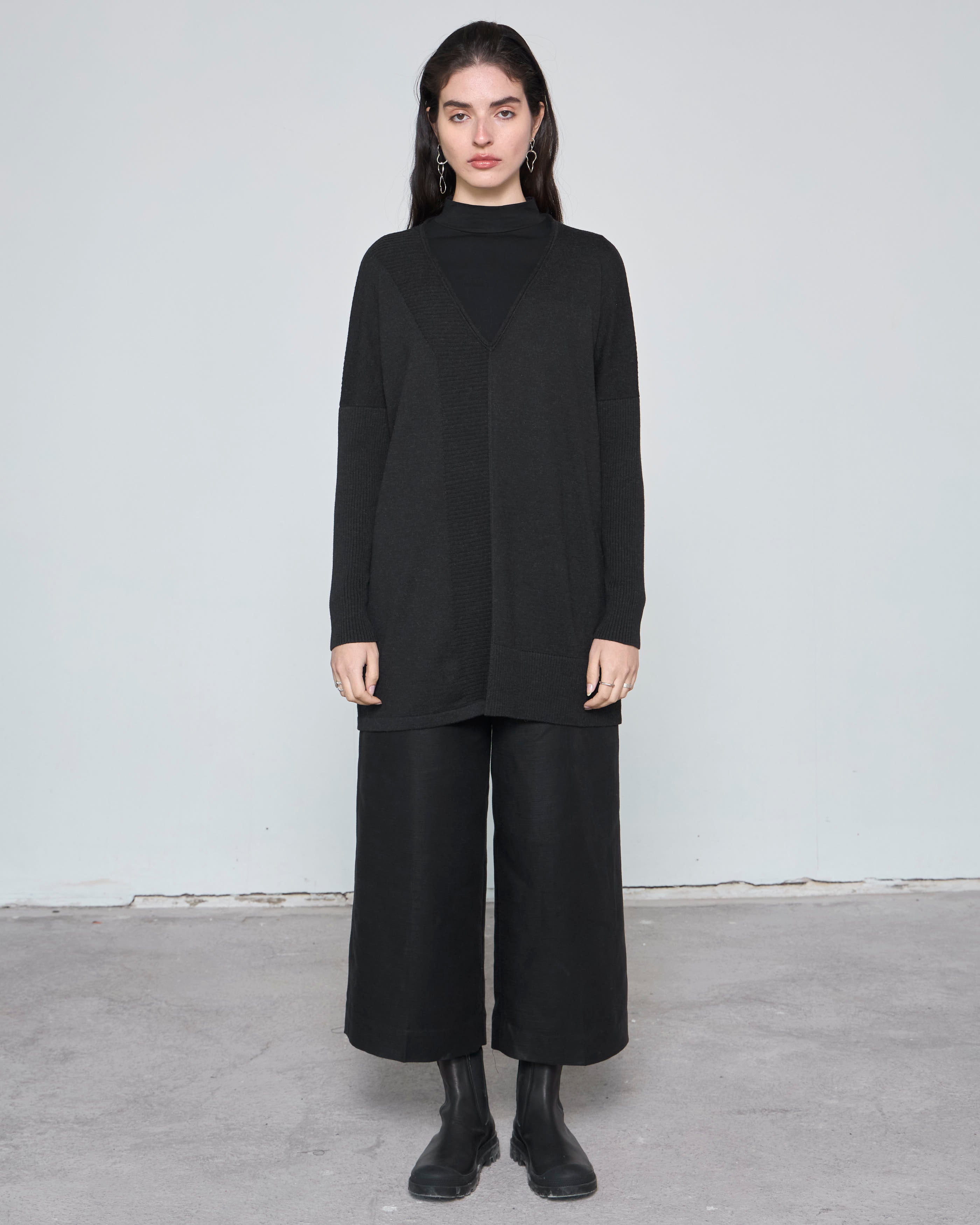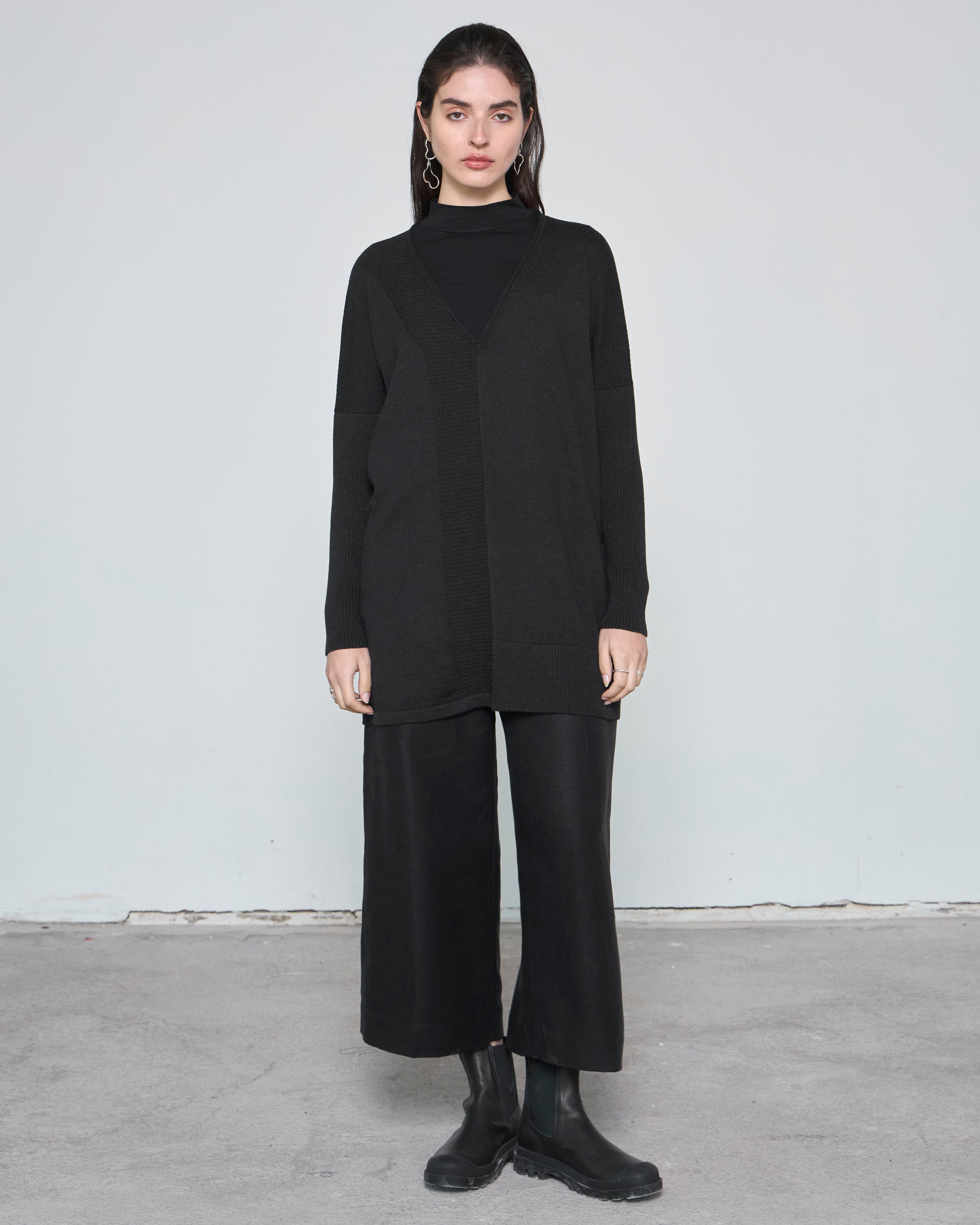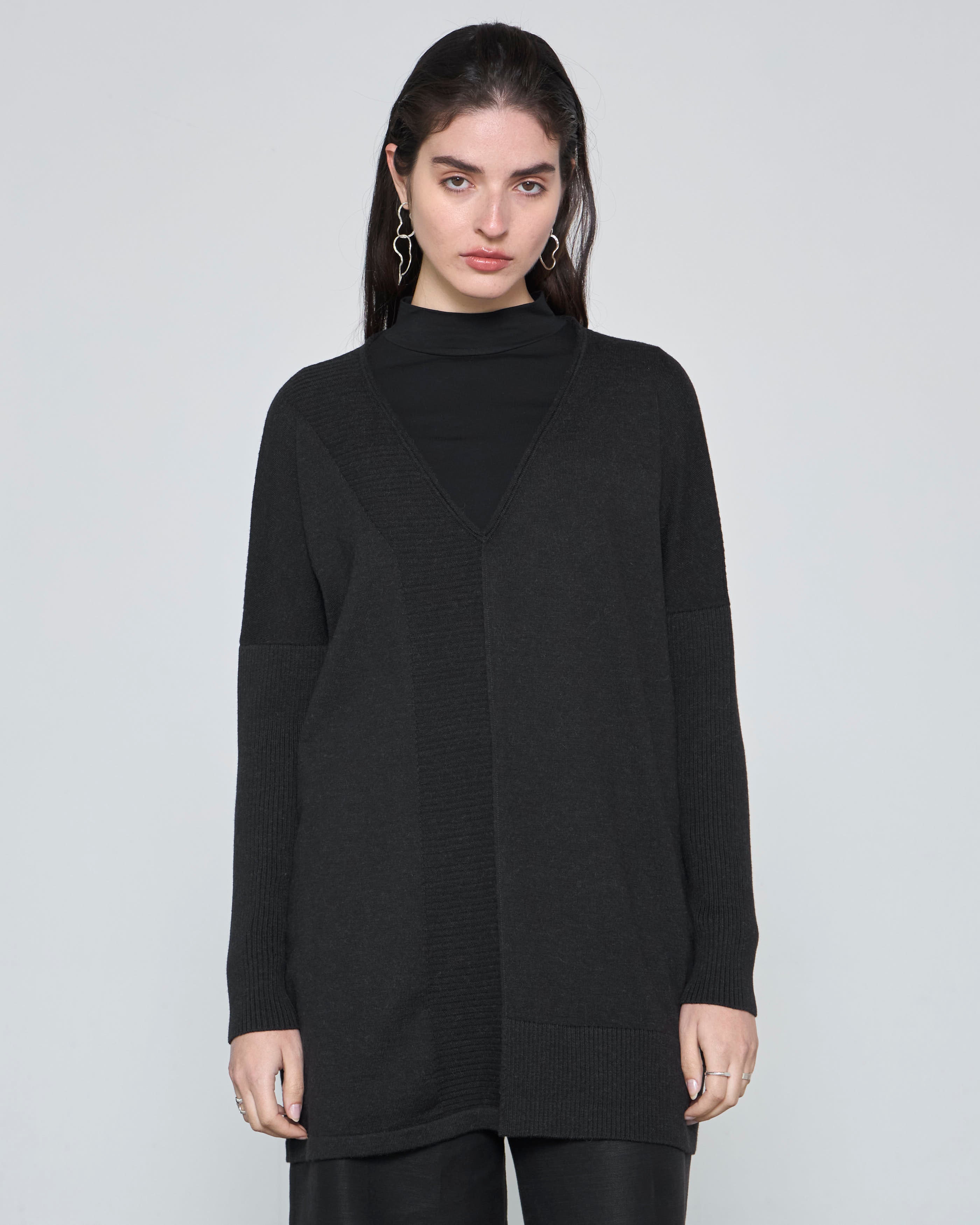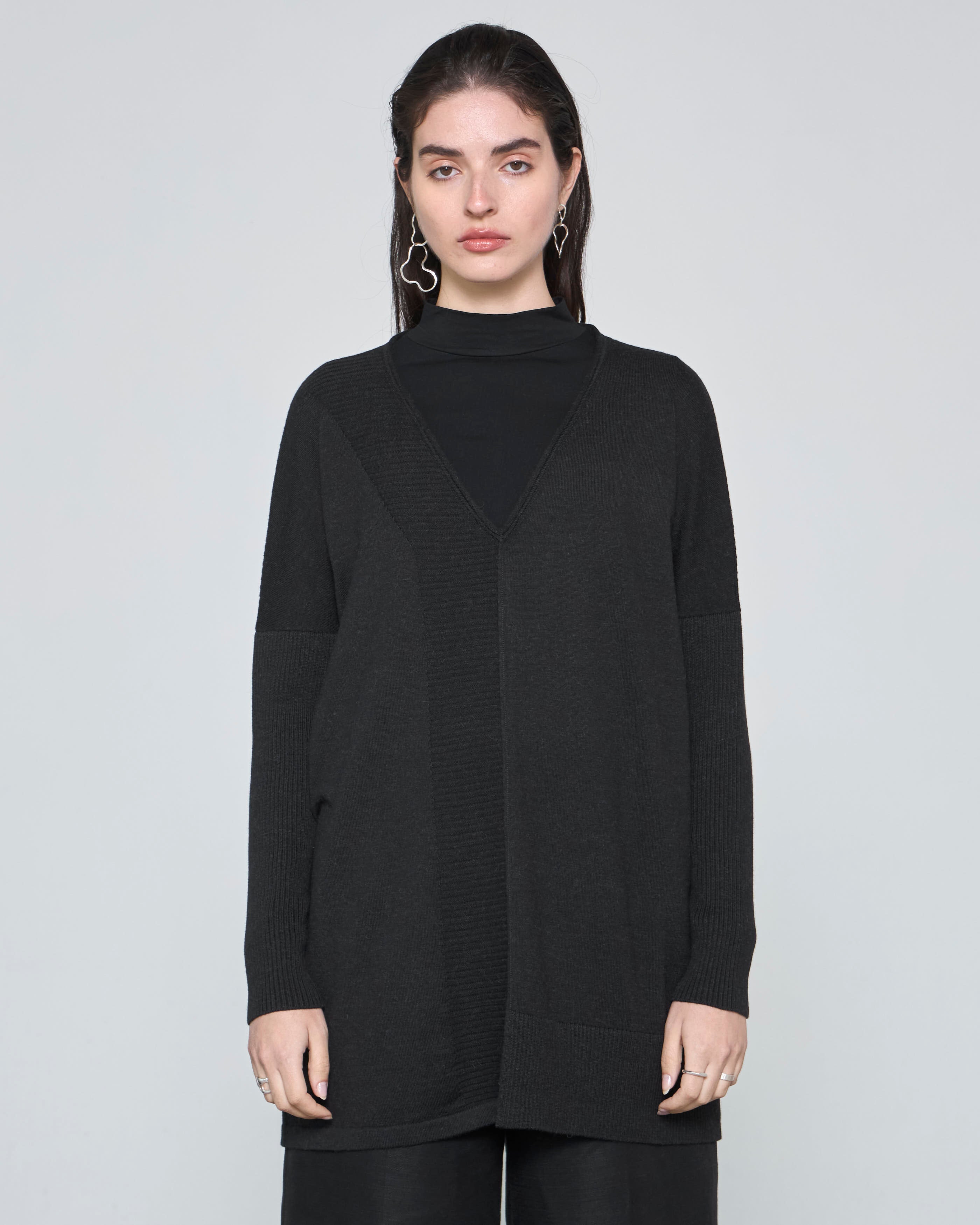 Nuestro tejido VANDANA es una prenda oversize, versátil y atemporal, diseñada para quienes buscan elegancia sin sacrificar comodidad. Con un escote en V, detalles de rib asimétricos y hombro caído, este tejido se adapta perfectamente a diferentes estilos, ya sea con pantalones anchos, leggins o incluso con un top básico como nuestro Testa.