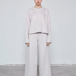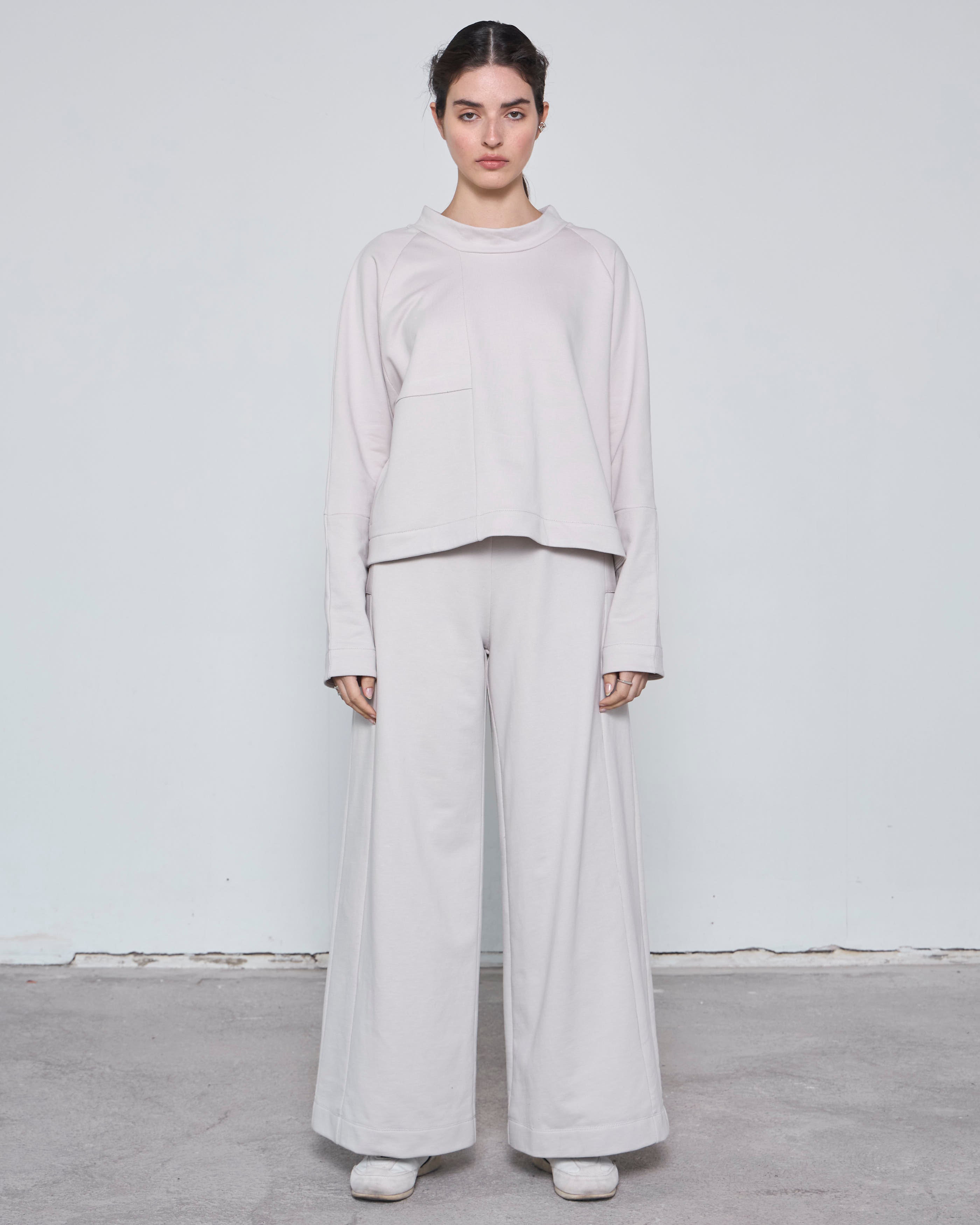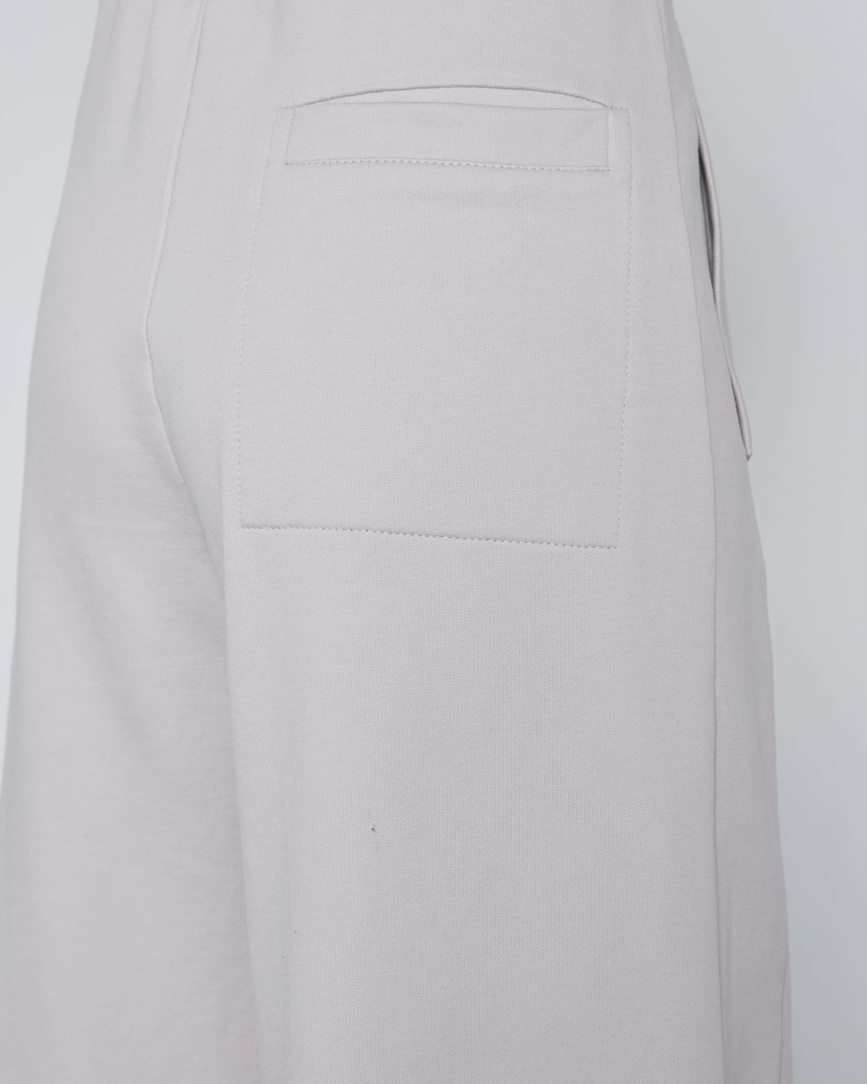 Este pantalón redefine lo casual con una silueta sofisticada, donde la textura suave del french terry se transforma en una prenda moderna y versátil, ideal para el día a día.