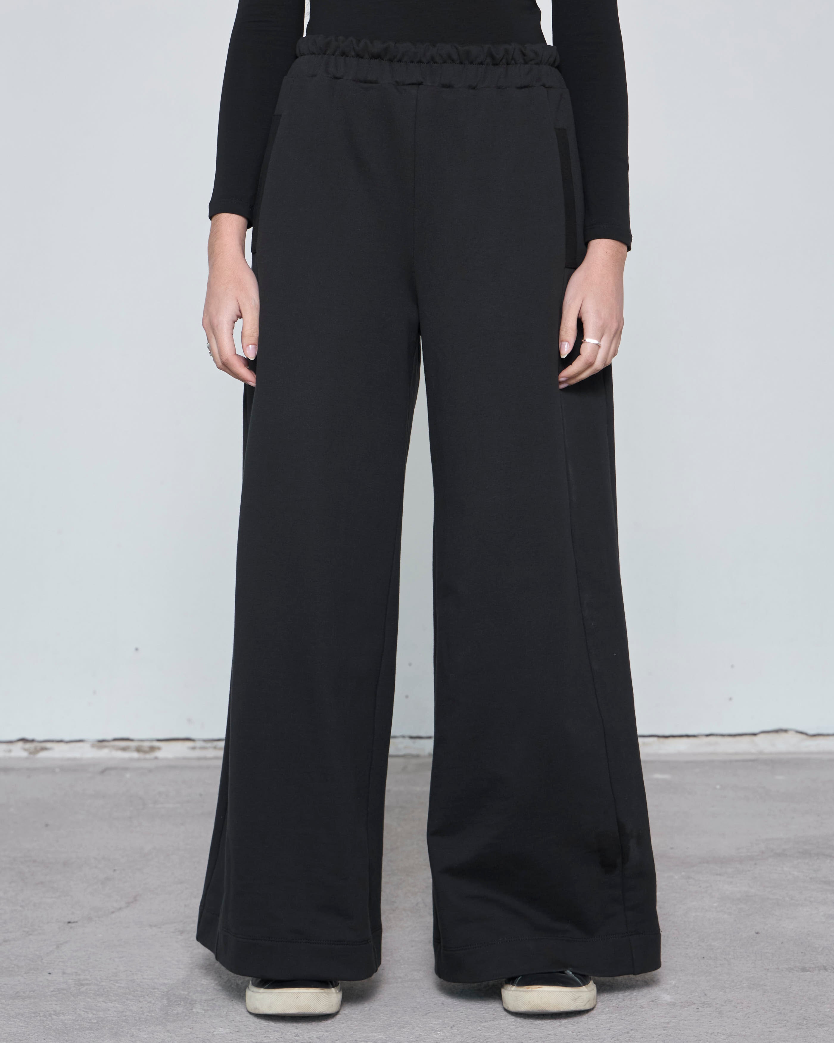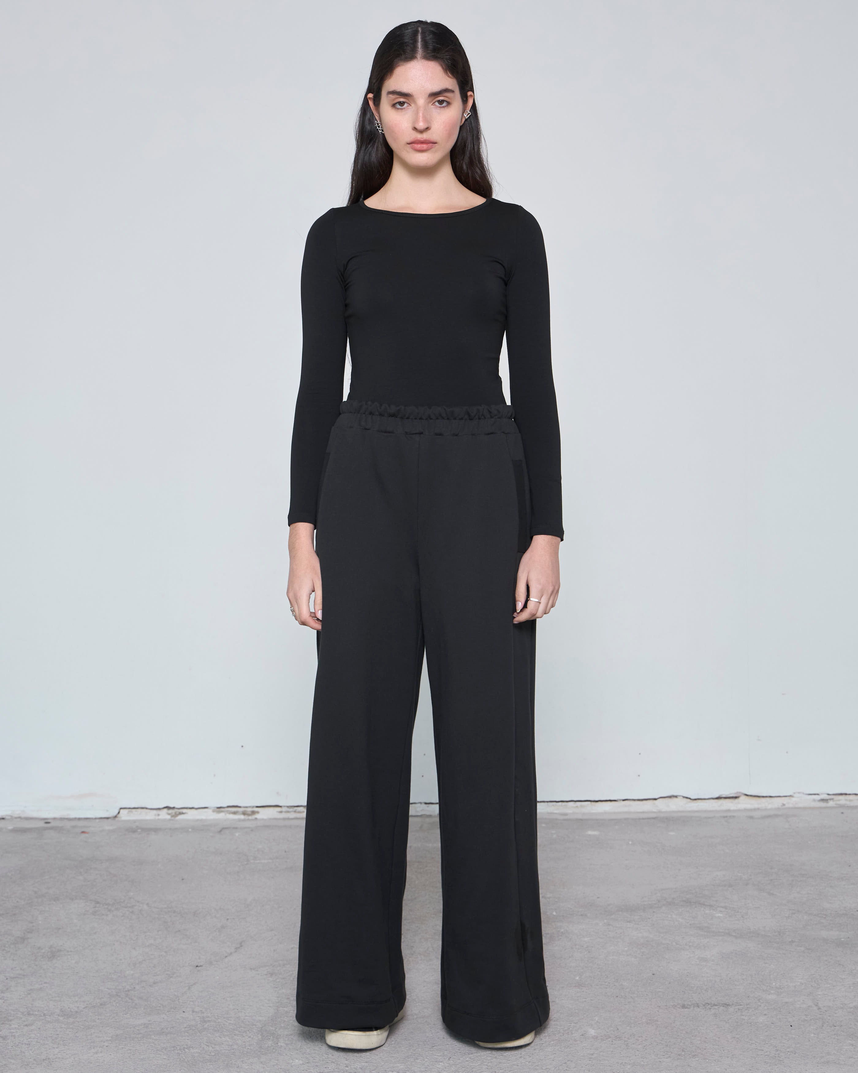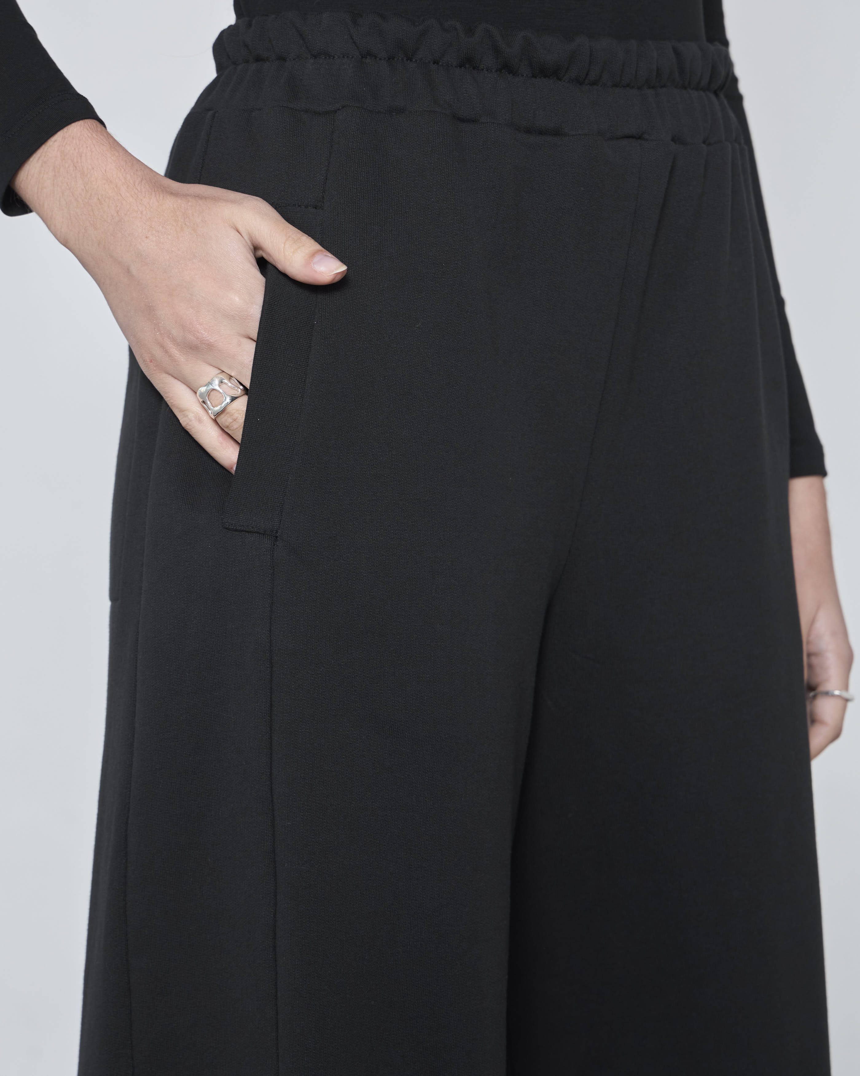 Este pantalón redefine lo casual con una silueta sofisticada, donde la textura suave del french terry se transforma en una prenda moderna y versátil, ideal para el día a día.